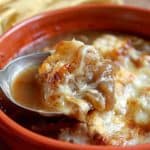 When the soup is ready, add the brandy/Cognac, if using and check for seasoning; ladle it into ovenproof bowls, and GENIUS SERVING TIP - top with the cubes of toasted bread - not an entire slice. It's so much easier to eat this way!