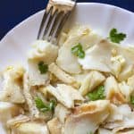 Remove the fish and allow to drain well and cool. Break the piece or pieces of fish into bite sized pieces.