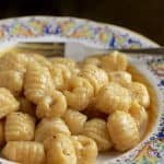 To cook the gnocchi: drop into the salted, boiling water and remove with a slotted spoon as soon as they float to the top or within 30 seconds, or so. Gently place the potato pumpkin gnocchi into a the pan with the butter sage sauce, and toss gently.